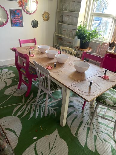 Half terms host a kids workshop for terrariums. KIds love getting their hands dirty and chaneling those creative juices and away from screens. All going home with their own mini garden.